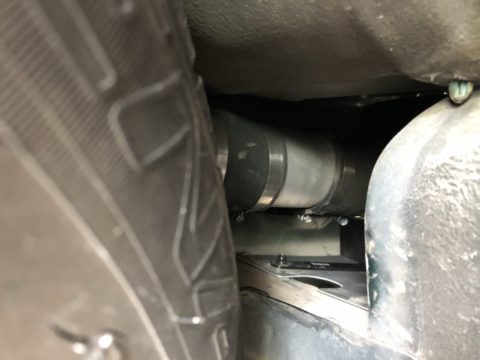 右前タイヤの内側にパイプの接続部分があるので取り外します。