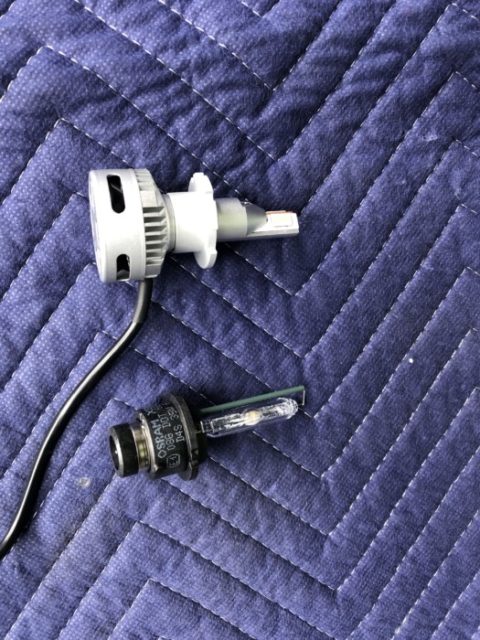 交換するLEDバルブ交換前のヘッドライト交換後のヘッドライト